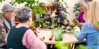 "Residents nurture plants and creativity in our therapeutic garden, enjoying fresh air, gentle exercise, and the joy of watching their efforts bloom."